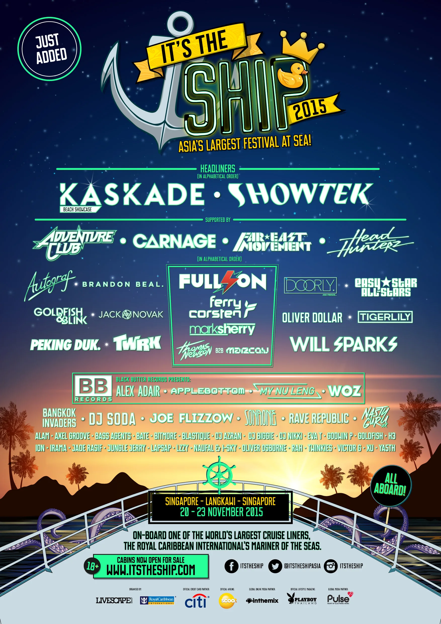 The 2nd instalment of “It’s The Ship” takes place aboard the luxrious 70,000 tonne Royal Caribbean International’s Mariner Of The Seas from 20th – 23rd November with a pit stop in Langkawi for a show-stopping private beach party to remember.