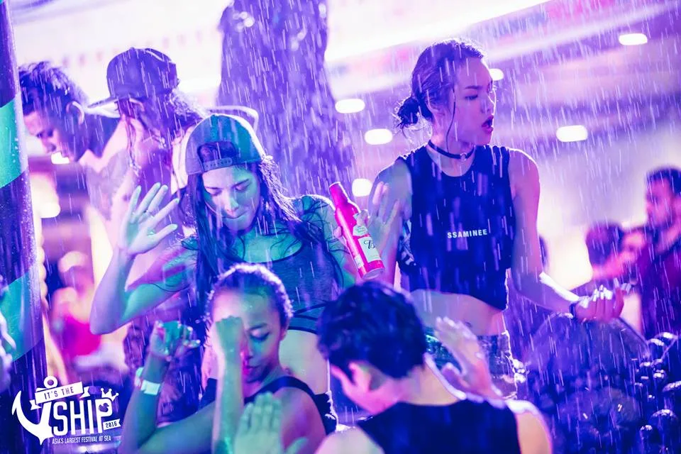 The 2nd night was invaded by heavy rain (no thanks to the monsoon season), but that did not dampen the spirits of happy revellers. Instead of going back to their warm rooms, many embraced the rain by jumping into the pool! Now that’s what we call a pool party 😉 Unfortunately, the fun didn’t last long as the main pool deck’s sound system were affected by the accumulated rain water. So all of the night’s following outdoor acts (Thaitanium, Far East Movement, Bangkok Invaders, and more) were relocated to indoor venues.