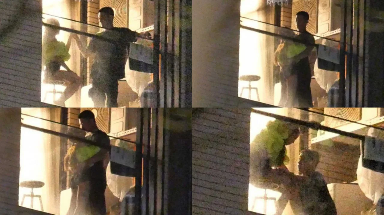 The time was 11:45pm when the photos were captured. Laughter was heard by the reporter and he pointed out that it was Ivy’s voice. Looking up towards the building, Ivy could been seen at the balcony with George. The female singer was still wearing the neon top from her concert but had changed out from her bottoms into a pair of black shorts.