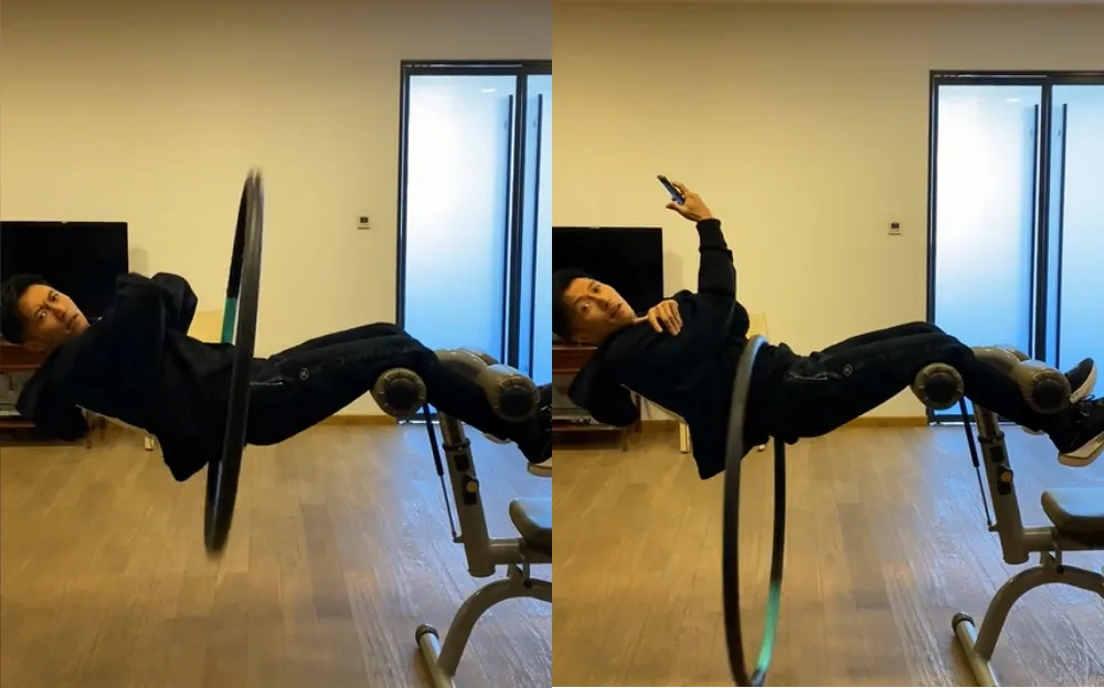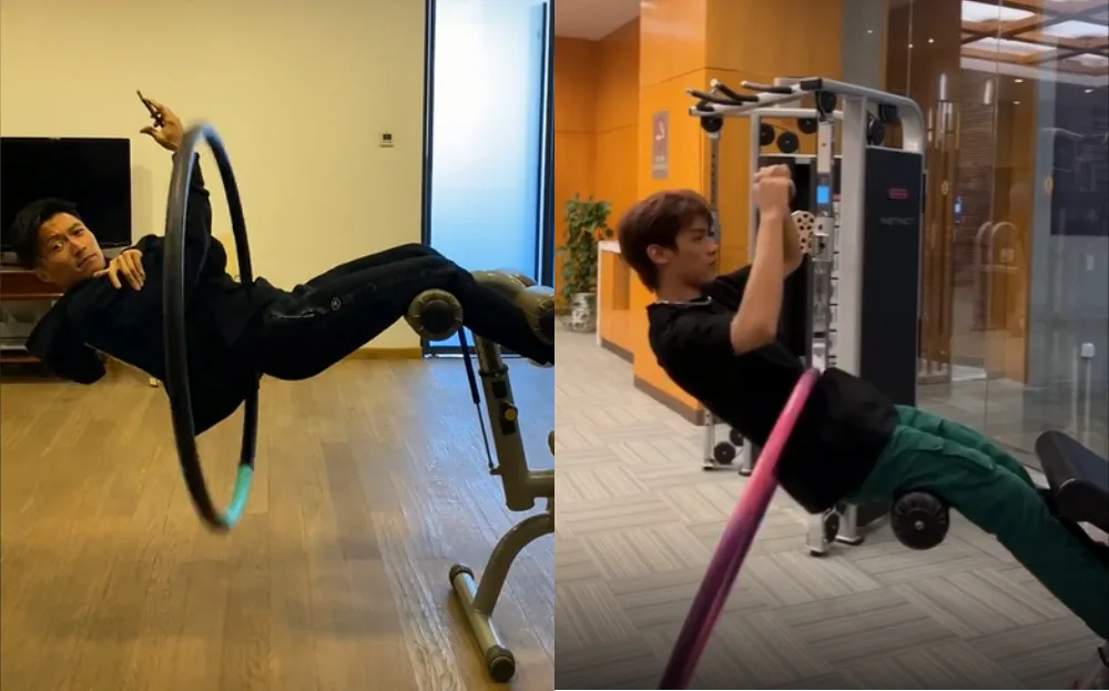 Douyin users were in an uproar yesterday (11th November) when Nicholas uploaded a new video to his account. He tagged it as “hanging hula hoop trick”. “I learned a trick in “Like! Talent show (点赞! 达人秀)”. Do you guys (want to) try it too?” he captioned the video. Using a piece of gym equipment, he supported his upper body with just his legs and starting hula hooping while lying sideways in midair. He managed the trick for 10 seconds, even taking photos as he did so before sitting up again.