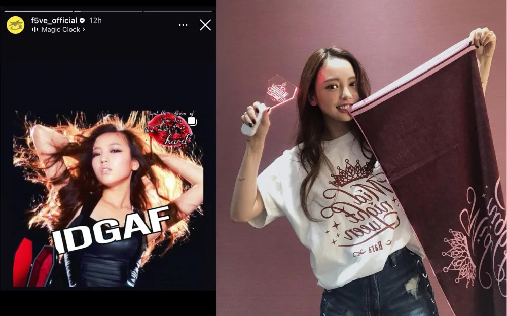 On 8th April 2025 (Tuesday), the group reposted an image on its Instagram Stories depicting a woman with the text “IDGAF” written in bold. The image also had additional text and decorations, including a coffin in the bottom left corner. It’s worth noting that f5ve is known for its “Gen-Z” marketing and often shares fanmade memes on their social media. Unfortunately, this particular meme got them heat because the woman depicted was KARA’s (카라) Goo Hara.