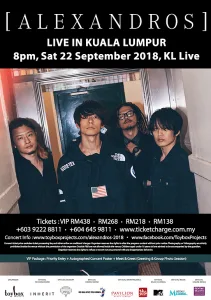 Organised by Toybox Projects, details for [ALEXANDROS] Live in Kuala Lumpur are as below:-