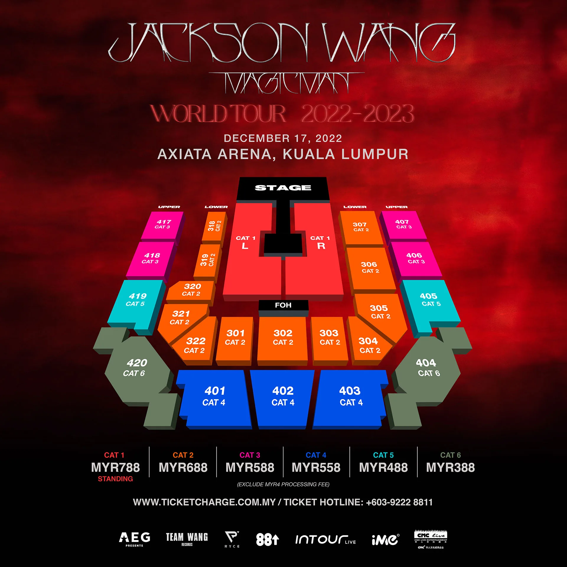 - Ticket Prices: MYR788 / MYR688 / MYR588 / MYR558 / MYR488 / MYR388