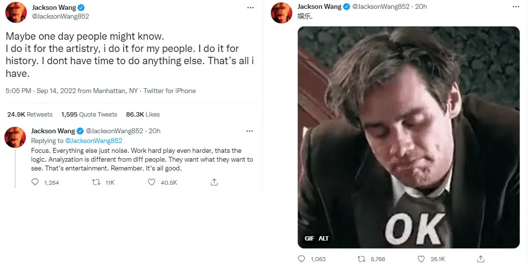 Jackson also added that with focus, he blocked out everything that wasn’t important. “(People) see what they want to see,” he reminded. “That’s entertainment. Remember. It’s all good.” To drive the point home, Jackson added “entertainment” in Mandarin and a gif saying “Ok, alright” at the end of his thread.