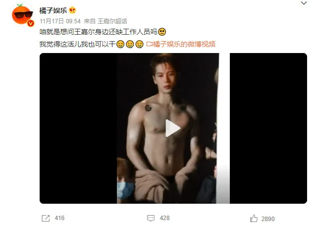 Someone took a sneaky clip of the staff oiling him down and posted it on Weibo. The clip immediately went viral as fans enjoyed the rare eye candy. Several netizens volunteered to help the idol out. “I’m here (to help)! I don’t want a salary,” one said. Another commented, “I just want to ask if there is still a shortage of staff (for) Jackson. I think I can do this job too.”