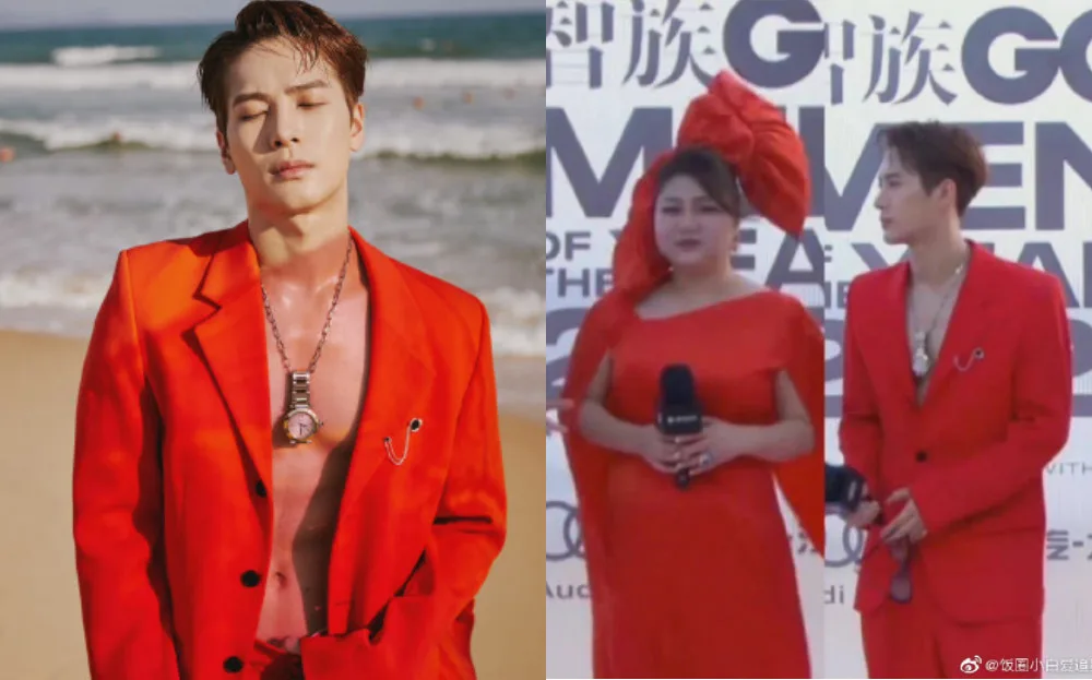 Needless to say, netizens were quick to pair the two up, which caused a lot of laughter online. “Yang Tianzhen and (Jackson)’s (outfits) look like a couple’s costumes,” one netizen commented upon seeing the two photos side by side. “GQ wedding scene,” another quipped. “I didn’t know the stars would be attending the (duo’s) wedding tonight,” a comment joked. However, some defended the stars’ coincidental clothing choice saying: “Successful female bosses must wear red, and successful male bosses must (also) wear red.”