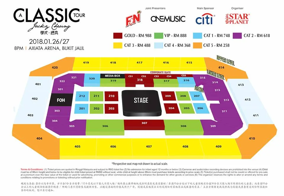 - Ticketing: RM988, RM888, RM748, RM618, RM488, RM368, RM258 (subject to