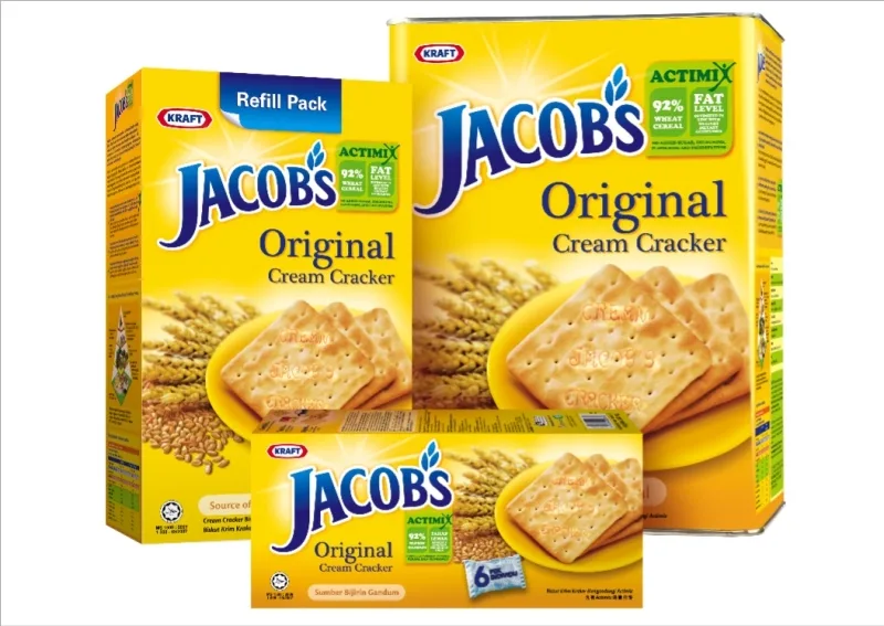 Jacob’s cream crackers have come a long way from its inception. The cream crackers, baked with the finest wheat flour and yeast are based on the traditional methods established by William Jacob in a small bakery more than a century ago. The light flaky cream crackers have become a household name in biscuits and are much loved by families worldwide today.