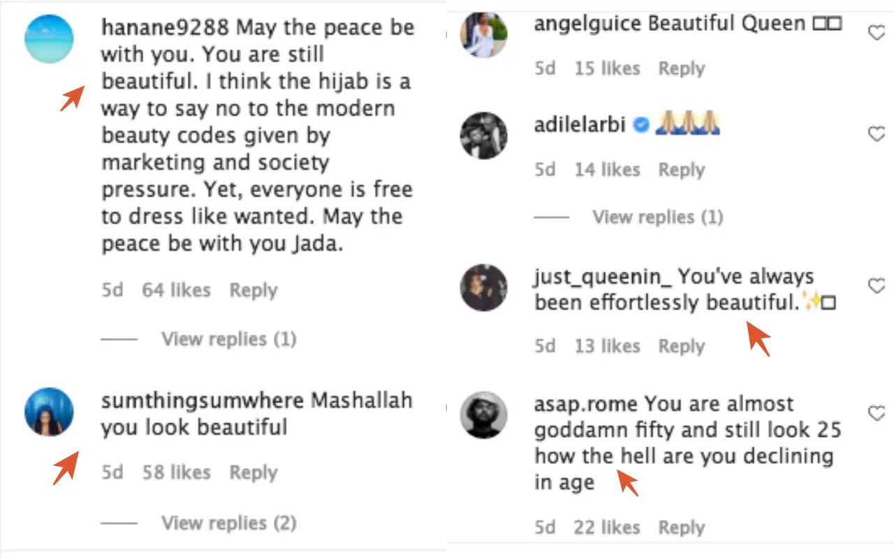 A few days after her hijab post made headlines, the “Red Table Talk” host treated her followers with another breathtaking shots of her in a different coloured headscarf. She said, “really think the colour peach in the Middle East … suits me. ✨”
