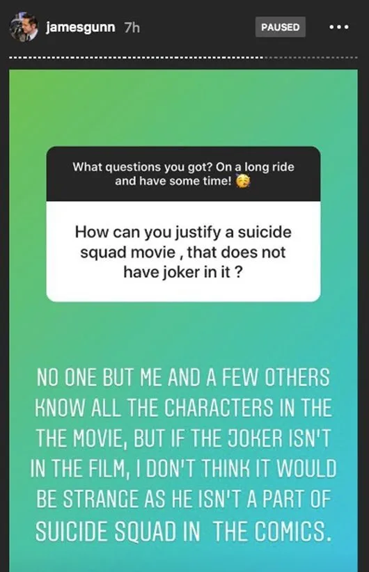 The fan asked the director, “how can you justify a Suicide Squad movie, that does not have a Joker in it?”