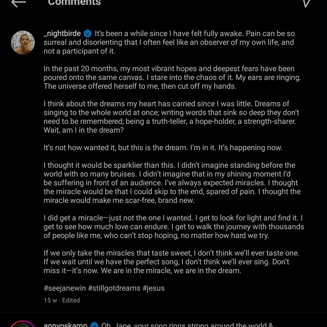“It’s okay if you’re lost, we’re all a little lost and it’s alright.” Jane Marczewski, who was known by her stage name Nightbirde, became a breakout star when she auditioned and sang her hit song “It’s Ok” on NBC’s “America’s Got Talent”.