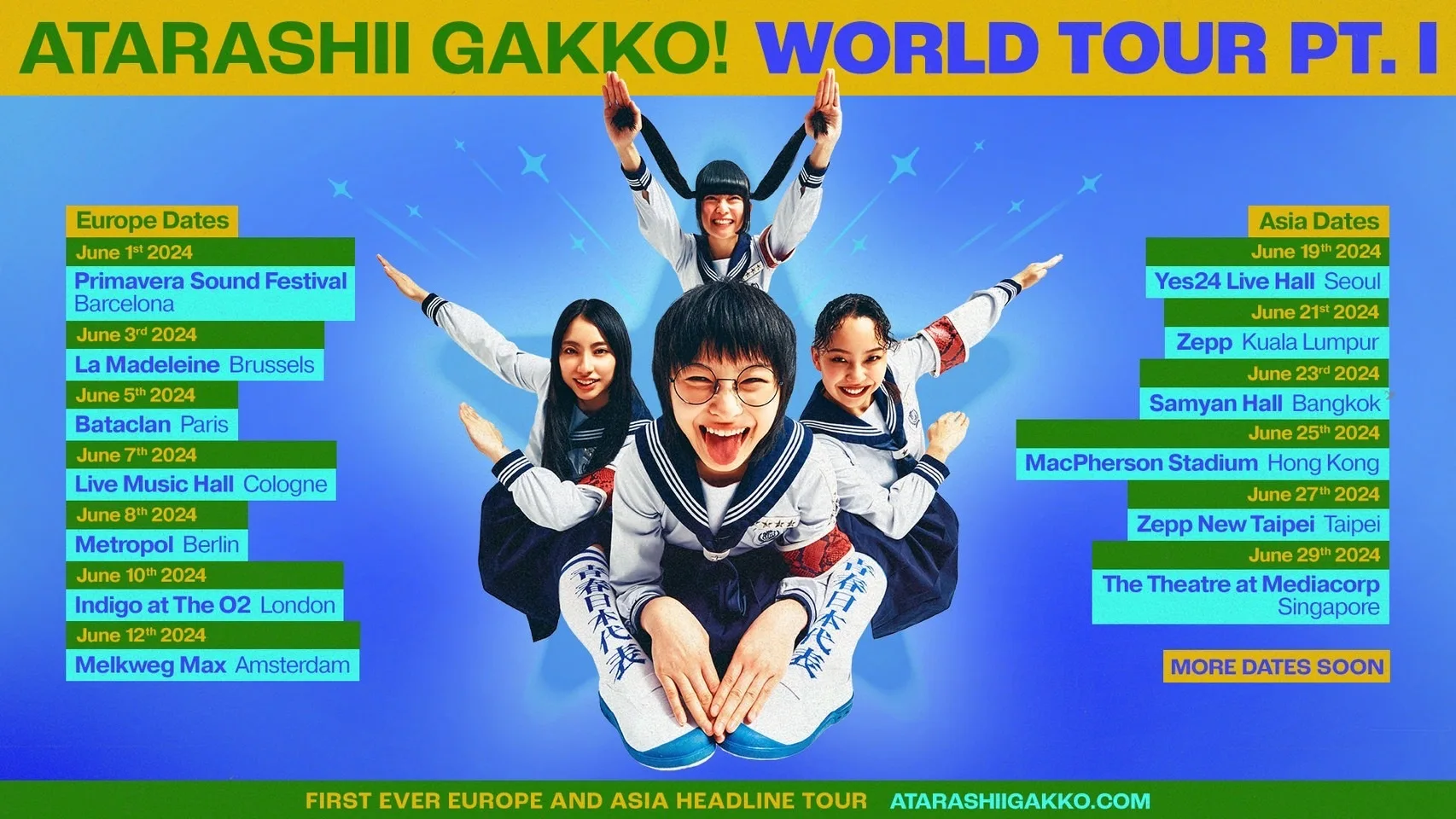 Here are all the dates for the ‘ATARASHII GAKKO! World Tour’ in Asia: