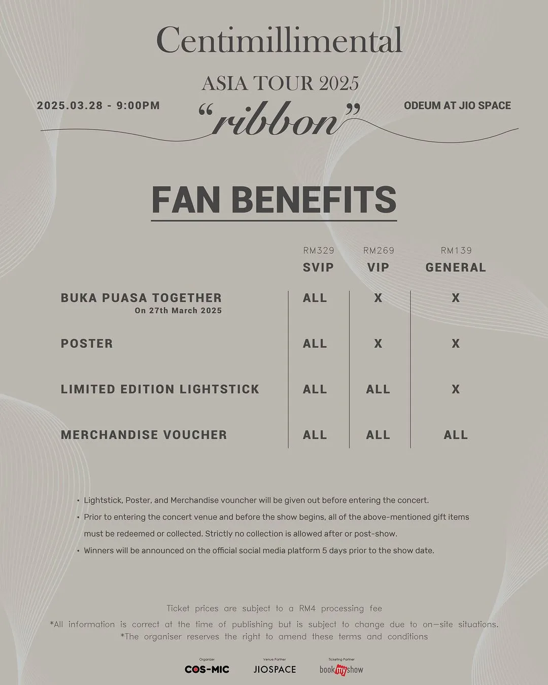 - Ticket Prices: SVIP: RM329, VIP: RM269, General: RM139
