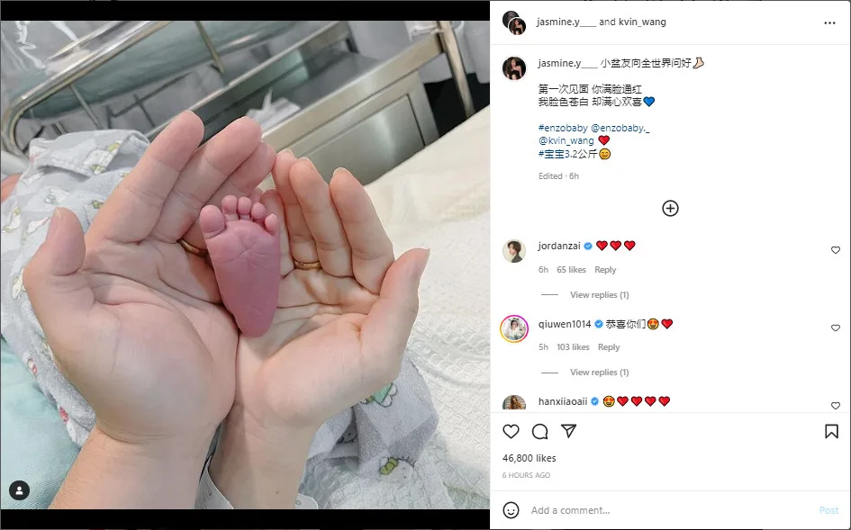 Friends and fans have left congratulatory messages on Jasmine’s post. Some also praised and thanked Jasmine for her hard work in bringing Enzo into the world. Well, we too would like to congratulate the happy couple and look forward to hearing more about Enzo as he grows older!