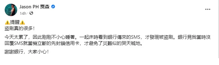 Knowing he hadn’t spent a lick of cash, Jason was quick to realise someone had stolen his credit card details and was attempting to filch his money. “Since I didn’t reply to the SMS at the time, the bank immediately blocked the credit card first,” Jason shared. “The disaster was averted.” The artist also made sure to thank his bank for their quick action.