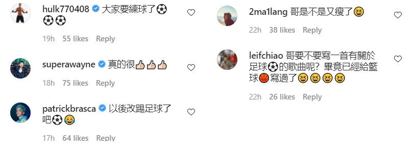 Fans were quick to jump on the joke, saying they were eagerly looking forward to seeing the artist on the field. “It seems (Jay Chou) is starting to replace (singing with) football,” one comment read. “Change to football in the future,” another suggested. Others asked if they would be getting a song about football soon.