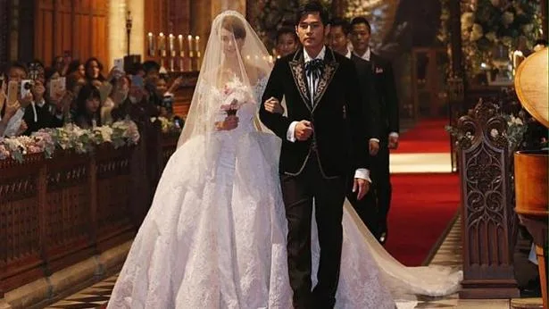 The wedding was a relatively low-key affair with only the pair’s parents and about 50 family members as well as friends in attendance. Jay spared no expense for his big day, and got a 20-member live orchestra to play music – one of which was a piece he composed especially for the occasion – during the event.