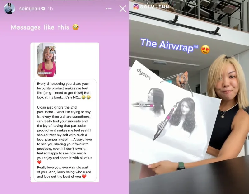 A few days ago, Jenn received a message from a fan that touched her heart. The fan first mentioned that they often feel inspired to get the product Jenn shares, but aren’t able to afford it. Still, they admire the sincerity and authenticity Jenn has when she talks about the product.