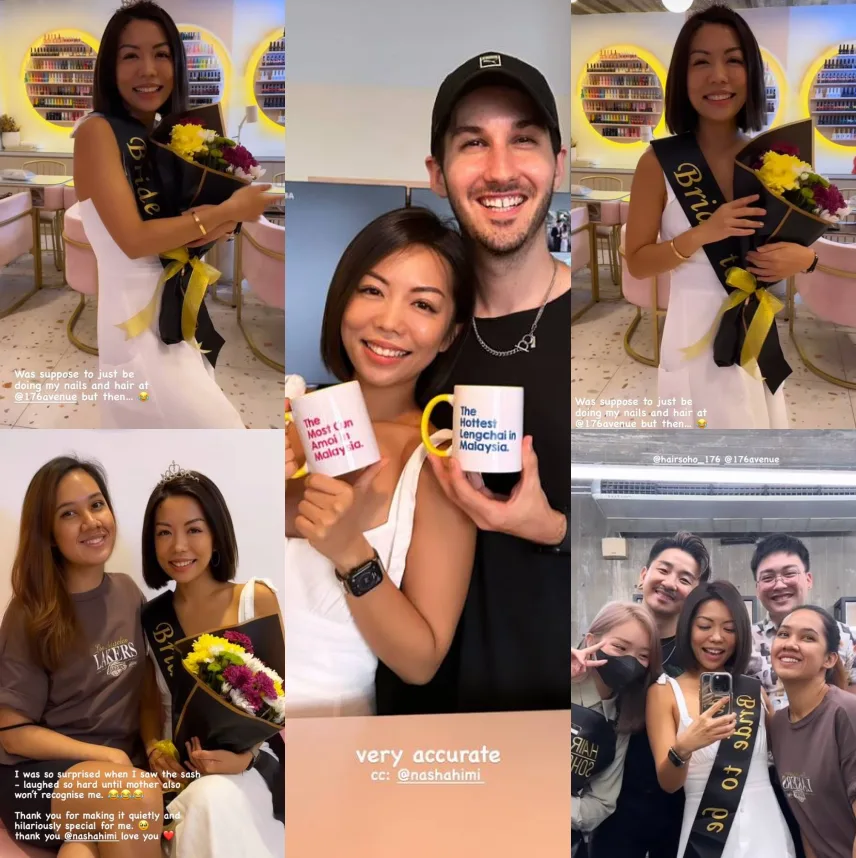 Prior to posting their wedding photos, over the past few days, the Malaysian influencer has been posting photos and videos on her IG stories of herself at her bachelorette party with her friends where she was seen donning a white dress, a tiara, and a Bride-To-Be sash. The singer also posted a Story where she and Jon showed off a supposed wedding gift of His and Hers mugs.
