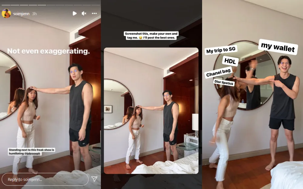 Needless to say, everyone found it adorable. “Standing next to this freakshow is humiliating,” Jenn sighed in another story. She then challenged netizens to make memes out of her mini video and even gave an example of one. Of course, eager fans rose to the challenge, especially after Jenn promised to post the best ones.