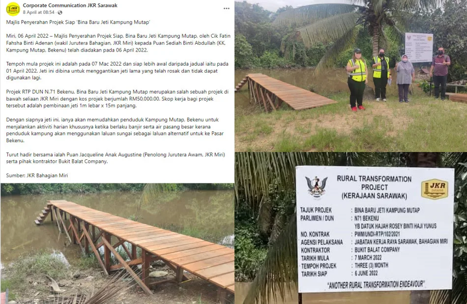 Over the weekend, a Facebook post made by the Sarawak Public Works Department (JKR) had gone viral for all the wrong reasons. They recently completed a simple wooden jetty at Kampung Mutap in Bekenu, Sarawak.
