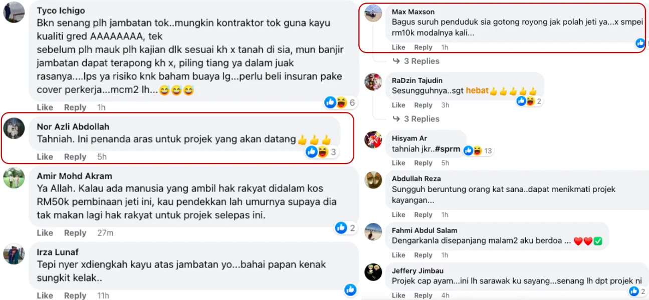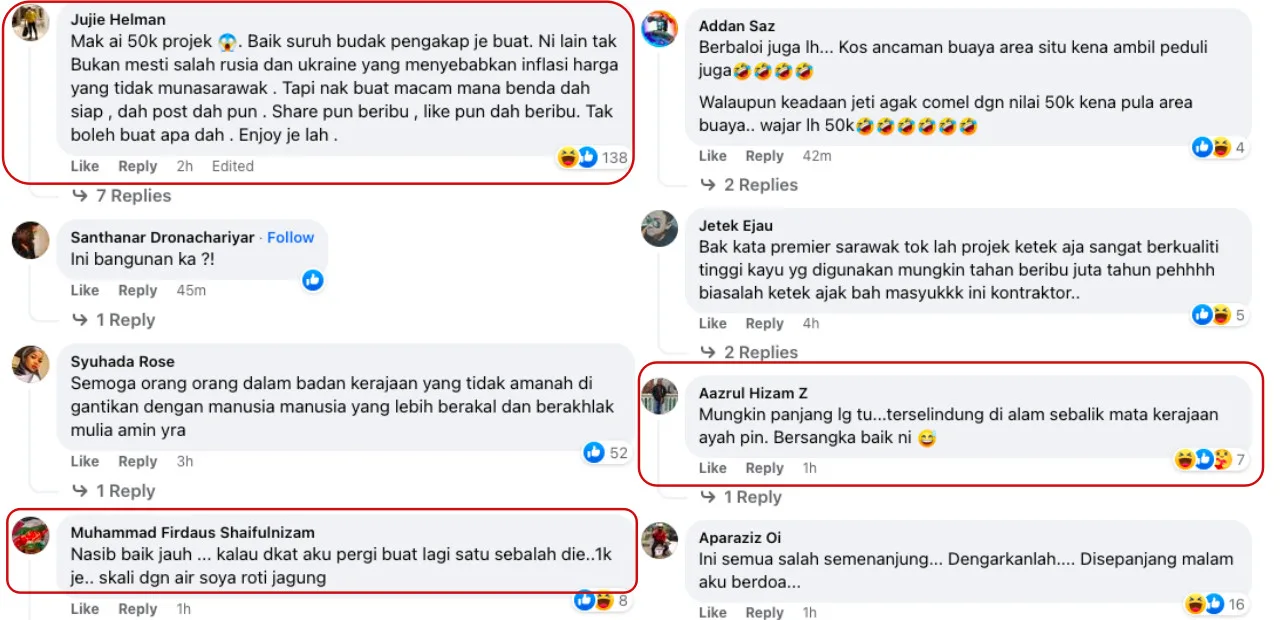 The replies section has been flooded with netizens questioning the breakdown of the project cost. In this case, most of them stated that given the amount of money allocated, the jetty could have been better built. One netizen sarcastically remarked, “For real? RM50k for this project? I think it’s better to ask the boy scouts to build it for them.”