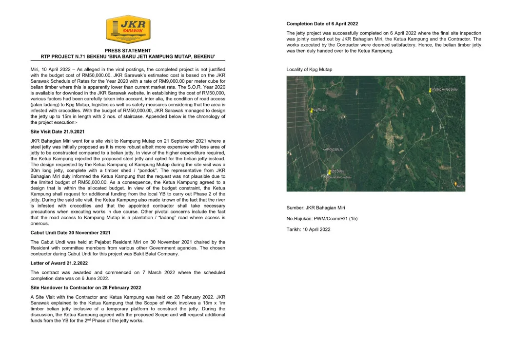 In response to the massive backlash from the public, JKR Sarawak later posted a press statement detailing the chronology of events leading up to the implementation of the aforementioned project on its official Facebook. You can read it here: