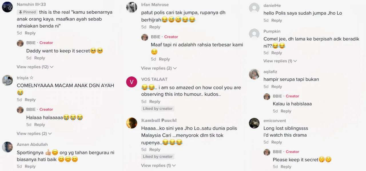 “In my opinion, the reactions left by netizens on TikTok were mostly positive. I didn’t even take all the remarks to heart. I’ll take that as a joke instead. Just so you know, this was my first time seeing people compare me to Jho Low. Back then, others used to say that I look like Michael Ang!” the Sungai Besar-born content creator was quoted as saying.