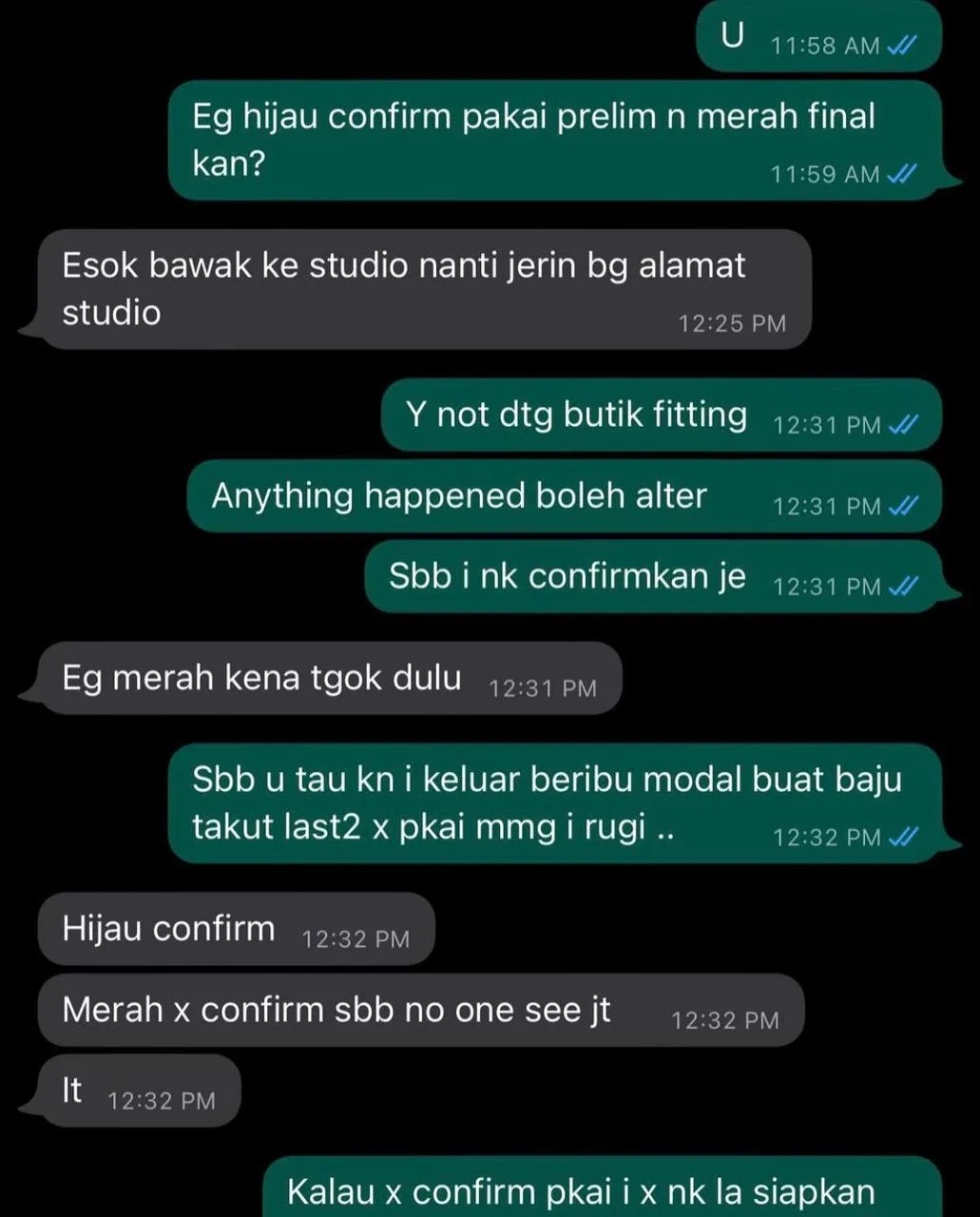 The designer had posted a series of proofs along with the picture and videos of the gown. The designer had designed two sets of evening gowns; a red one and a green one, both equally stunning! However, according to the WhatsApp chats between Jimmy and Lisha’s party, it seems that they have yet to confirm whether the red gown will be worn by Lisha during the final round of the event. Take a look at the gown and said conversation:
