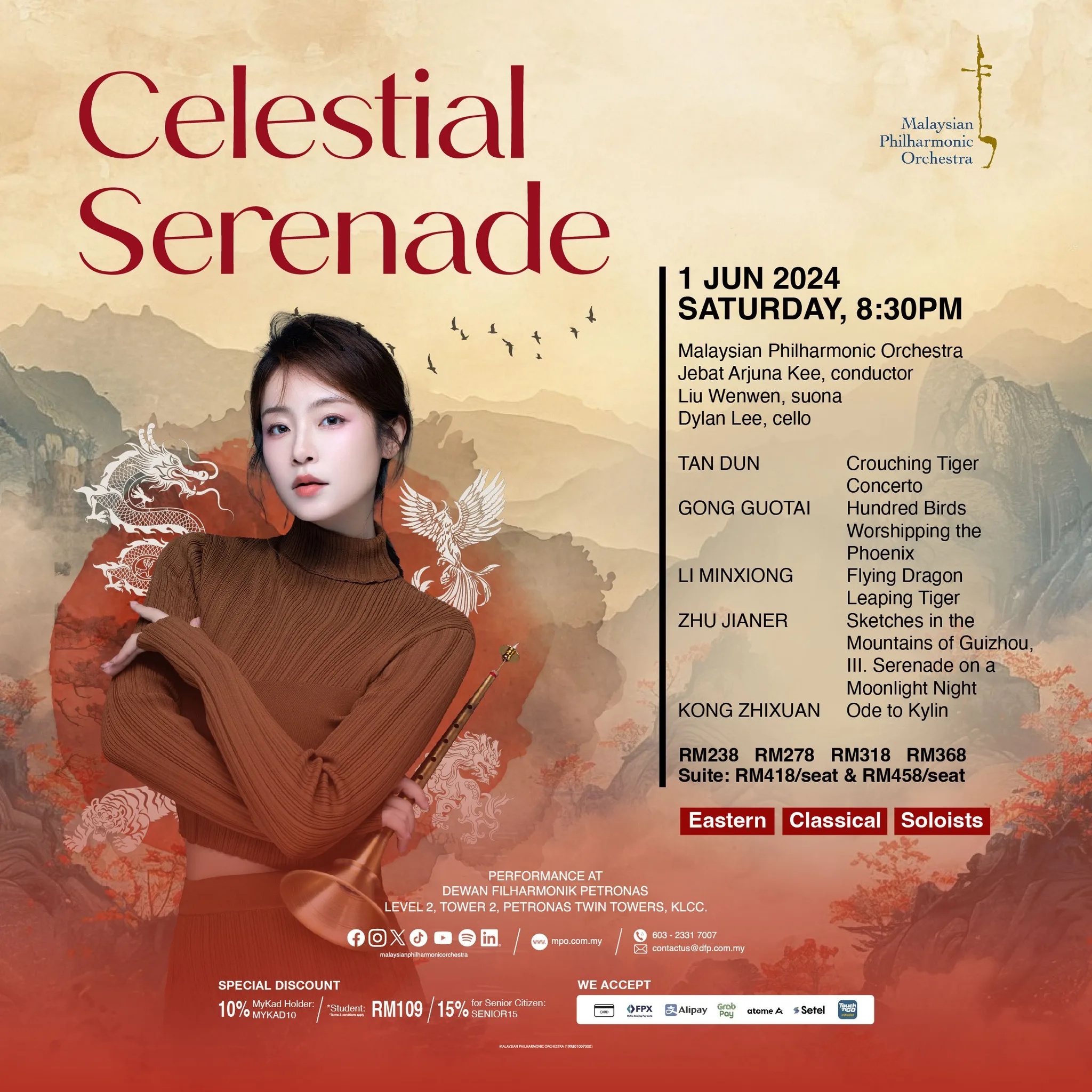 Prepare to be tantalised by Chinese instrumentalist Liu Wenwen as she joins the MPO in its maiden performance featuring the classical suona! If you want to be mesmerised by performances of traditional Chinese folk tunes and more, click here for your tickets!