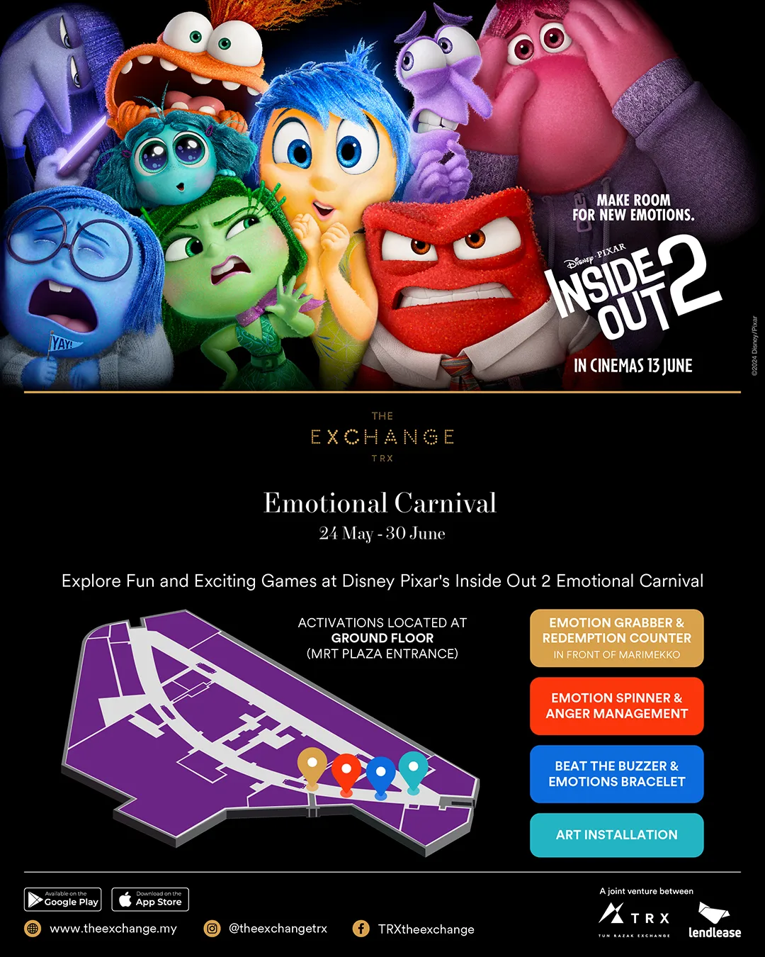 Get in tune with your emotions at the Inside Out 2 Emotional Carnival! Join the characters from the beloved Disney Pixar movie in myriad games and activities fit for the entire family! You’ll also stand a chance to redeem special gifts – so click here to learn more!