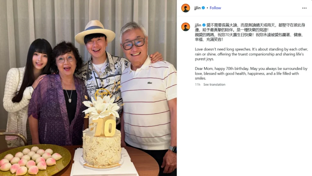 On 29th December 2025 (Monday), JJ Lin took to social media to share birthday wishes for his mother. The post writes, “Love doesn’t need long speeches. It’s about standing by each other, rain or shine, offering the truest companionship and sharing life’s purest joys,” along with well wishes for his mother, who turns 70. However, what caught netizens’ attention was the photo.