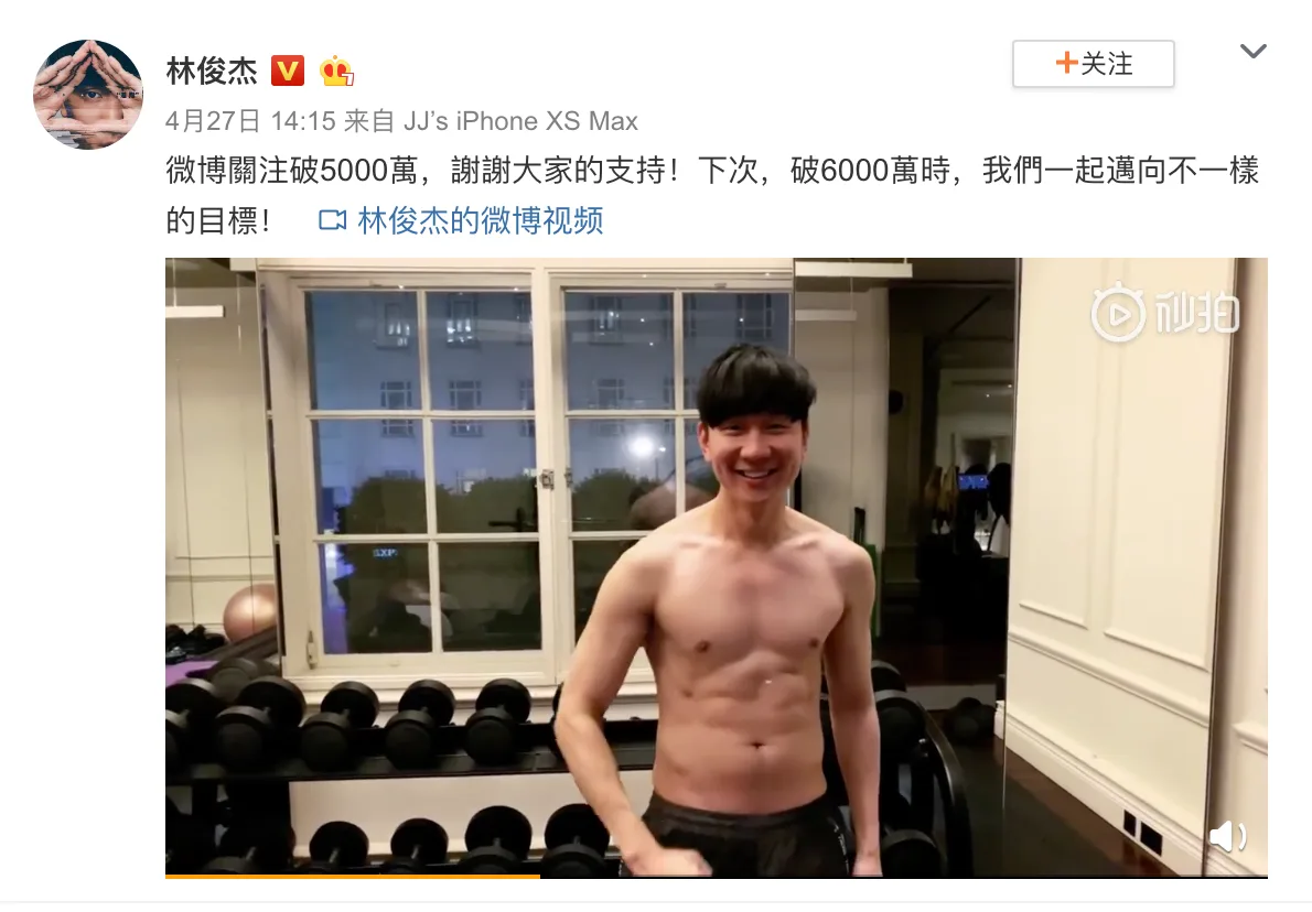 Earlier on 6th April, the 38-year-old singer promised fans that he will go shirtless and show off his 6-pack abs if fans help him reach 50 million followings on Weibo (which is the Chinese version of Twitter).