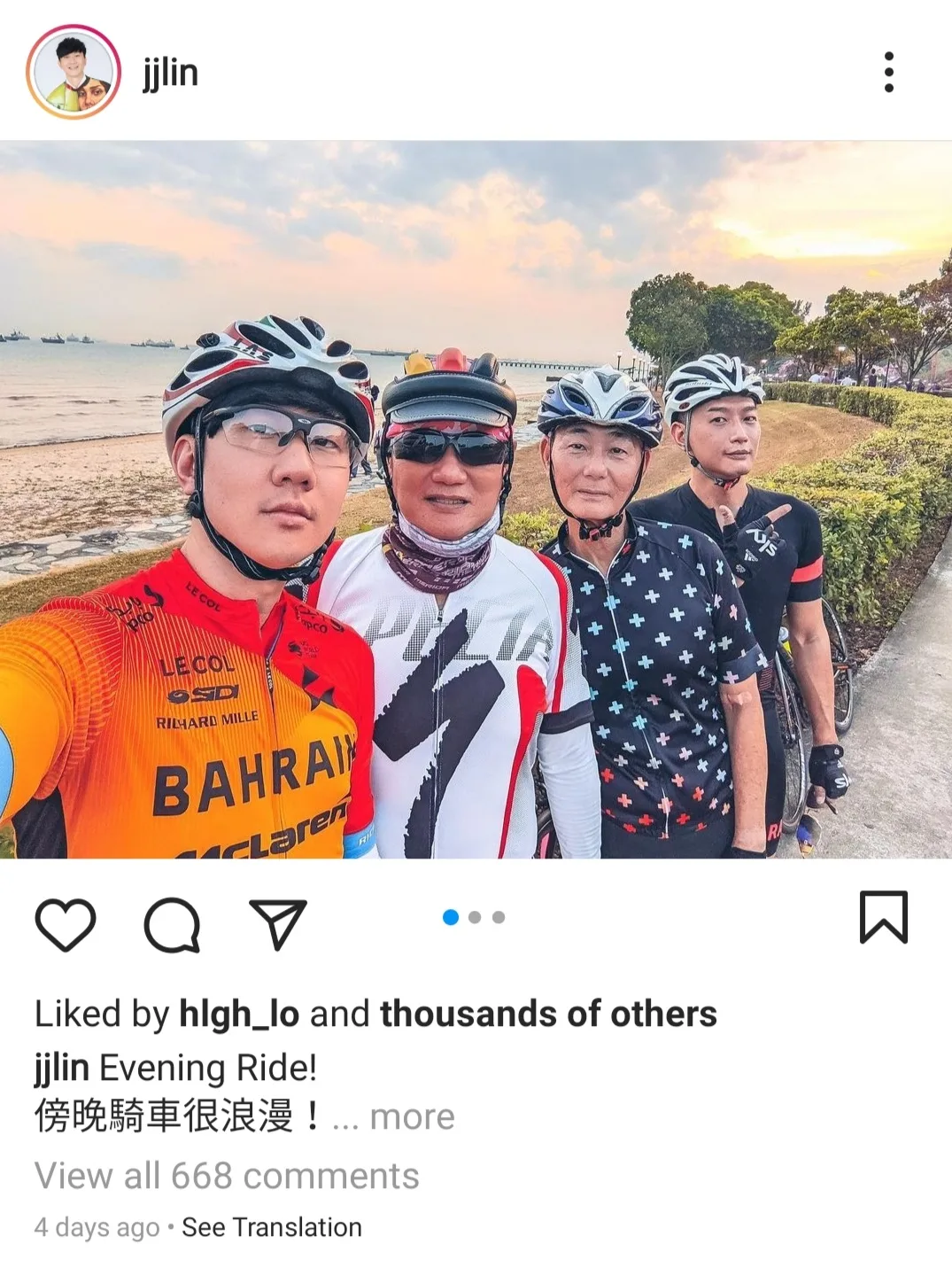 JJ Lin (林俊杰) caught the attention of netizens when he wore a fancy and expensive-looking accessory. The 38-year-old singer returned to Singapore for Chinese New Year from Taiwan and has recently posted photos of himself on a bike outing.