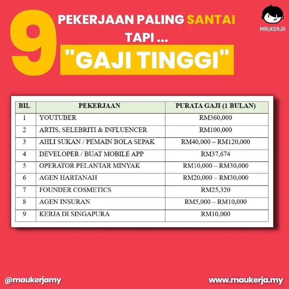 Recently, online job-searching portal Maukerja posted an infographic on high-paying “easy jobs”. Many were surprised to discover that the top high-paying job was being a YouTuber where the monthly income can go up to RM360K, according to the post. The post managed to catch the attention of popular Malaysian YouTuber Che Nom, who is known for her cooking content.