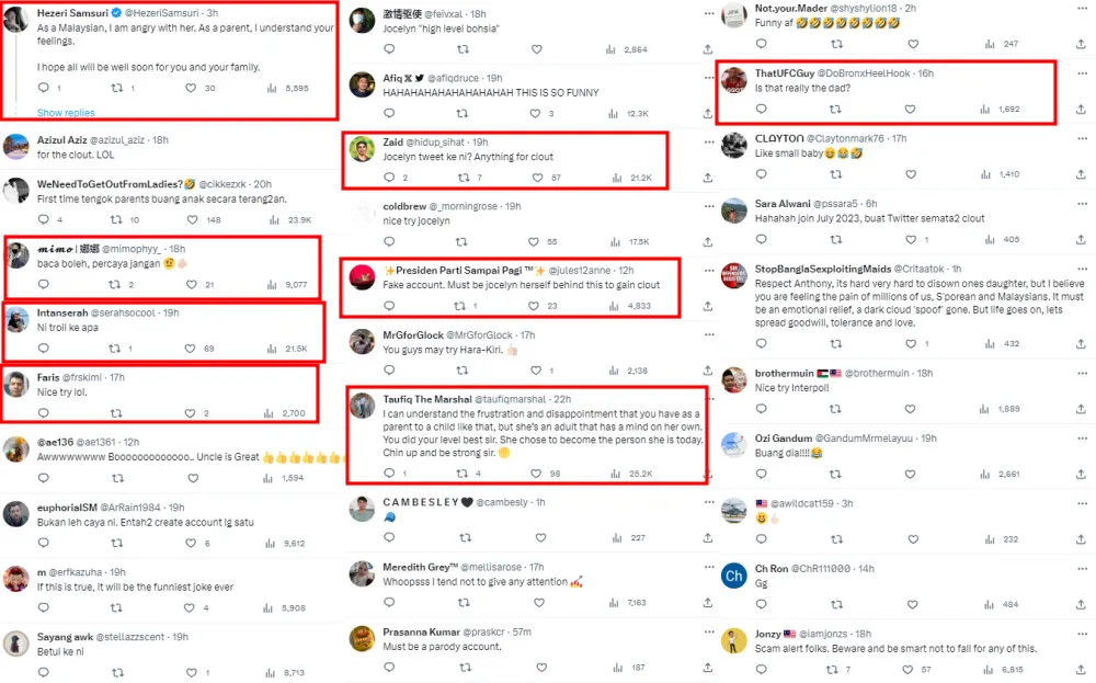 However, netizens remain skeptical of the post and its author. Several have pointed out that the account @achiawhyeliang was only made in July. “You can read it, but don’t believe it,” one comment quipped. Another asked: “Is this a troll or what?” Others were certain it was Jocelyn herself, still chasing clout. “Nice try, lol,” one stated.