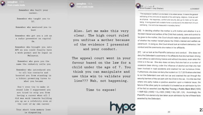 An insider told us that while Joey initially won the case in high court, the court of appeal judges have sided with Patricia and granted her full custody of their daughter Sophia Sue-Lin yesterday (Thursday, 18th June).
