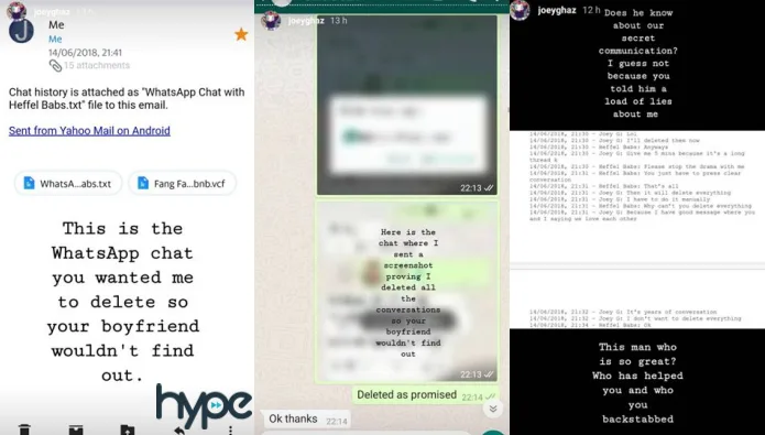 “Guess what? I emailed the chats to myself before I deleted them and sent you the screenshots to show they were deleted. Lol. You even lied to him!” Joey wrote. This exchange was dated back on 14th June 2018.