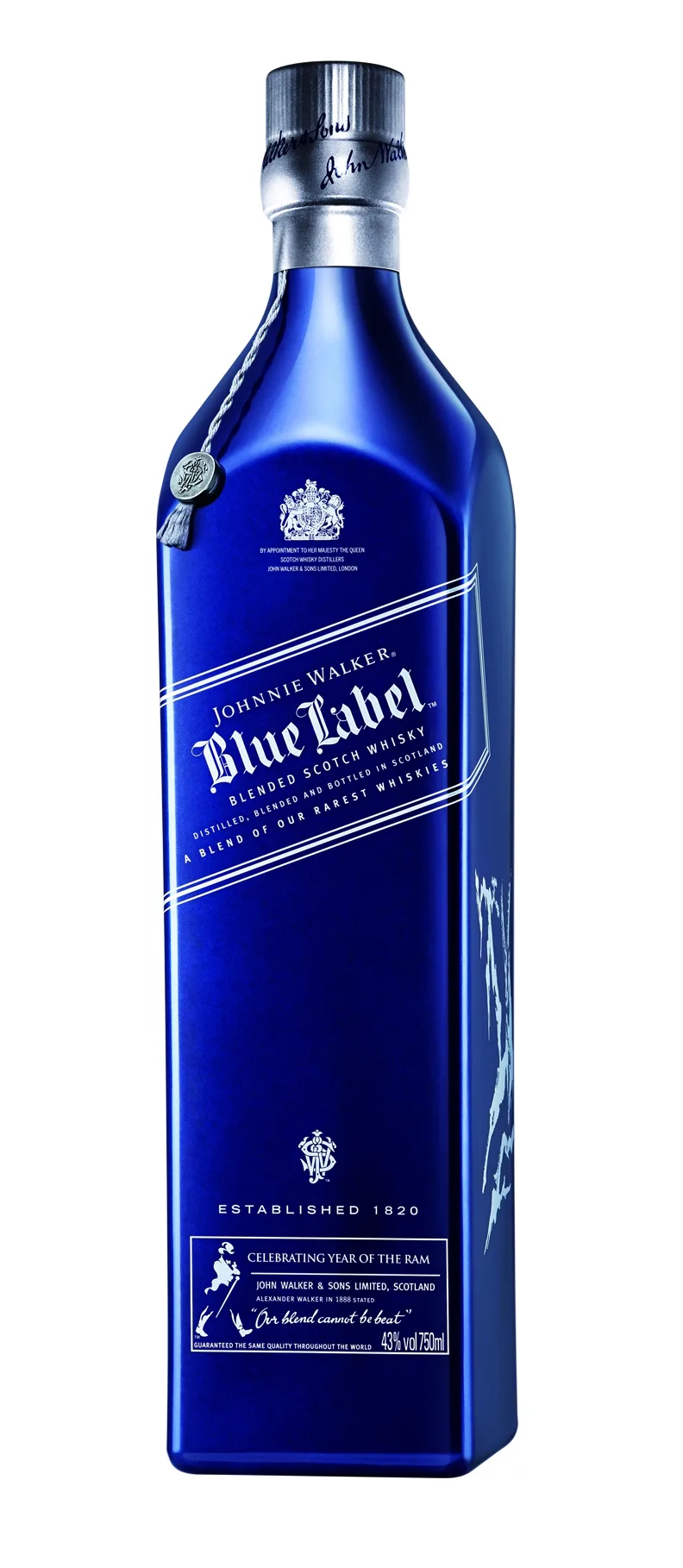 The bottle pictures three rams, all-standing in lordly positions, a traditional reference to the Book of Changes portending a New Year of great fortune. Its royal deep blue colour resonates brilliantly with the unique complexity of Johnnie Walker Blue Label.