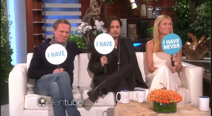 Johnny Depp, Gwyneth Paltrow and Paul Bettany, recently sat down with Ellen DeGeneress to talk about their new action-comedy film “Mortdecai” on an episode of “Ellen”. While on the show, the trio took part in a game of “Never Have I Ever” where DeGeneres got them to spill their guts on national television.