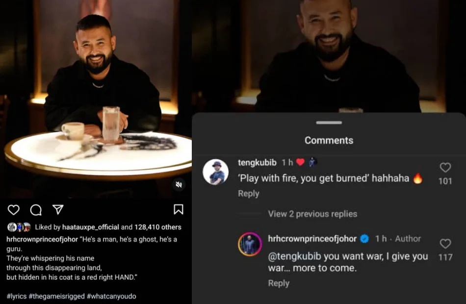 The post also included the hashtag #thegameisrigged #whatcanyoudo and what caught many people’s attention was that the first comment was left by Tengku Salehuddin Shah Alhaj, a member of the Selangor Royal family. The comment reads, “Play with fire, you get burned’🔥” to which the Johor Prince replied with, “You want war, I give you war. More to come”. It was assumed that the two were talking about which football team would win in the upcoming Liga Super match.