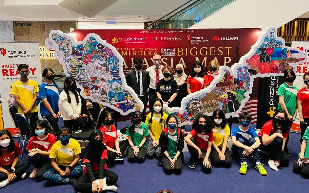 Inspired by the Merdeka theme, ‘Keluarga Malaysia Teguh Bersama,’ Puzzle Planet, Taylor’s International School Kuala Lumpur, and Intermark Mall came together to celebrate the Malaysia Book of Records recognition of ‘The BIGGEST MALAYSIA JIGSAW PUZZLE MAP.’