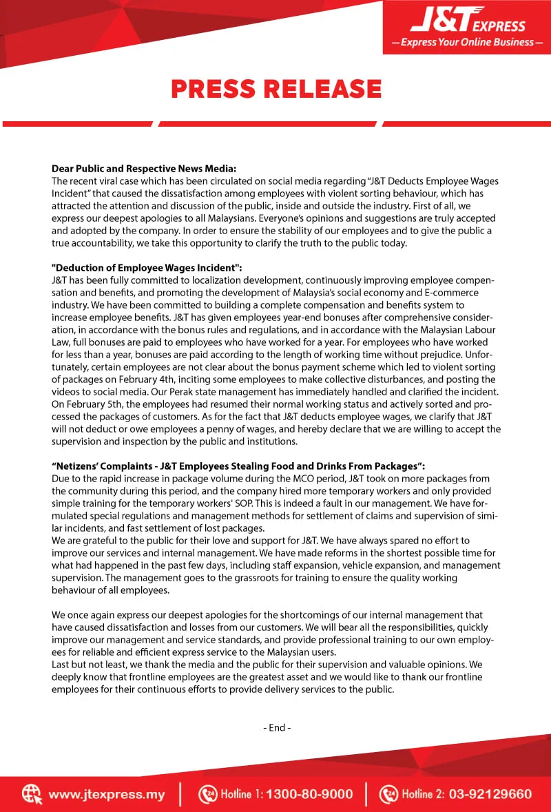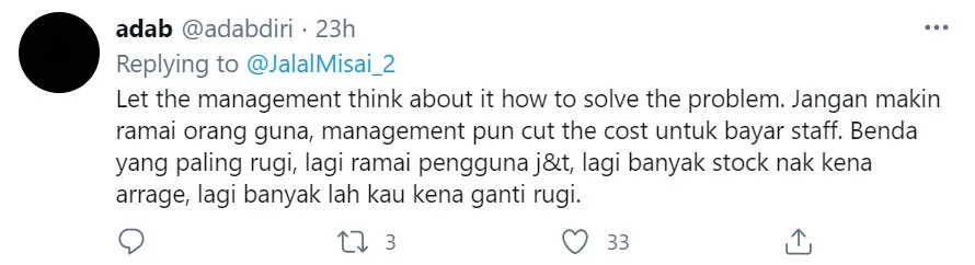 Hopefully J&T Express can resolve their numerous issues before they lose their customers completely.