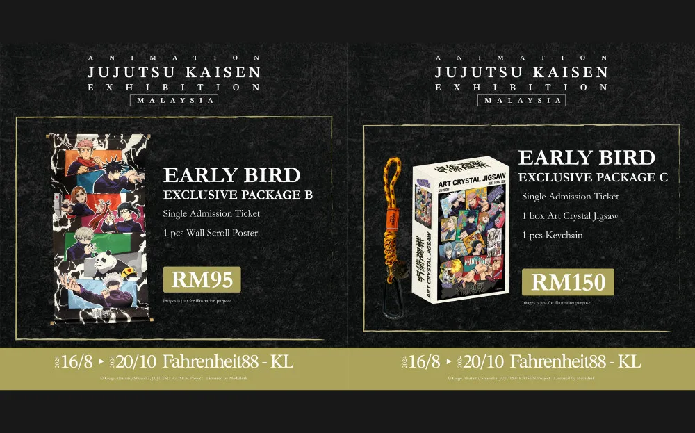 Early bird tickets for the exhibition start at just RM45, with bundle packages available for those seeking additional exclusive items. With its extensive displays, interactive elements, and exclusive merchandise, this event is poised to be a must-visit for anime enthusiasts and curious newcomers alike. Don’t miss your chance to step into the enchanting world of “Jujutsu Kaisen” and experience the magic firsthand.