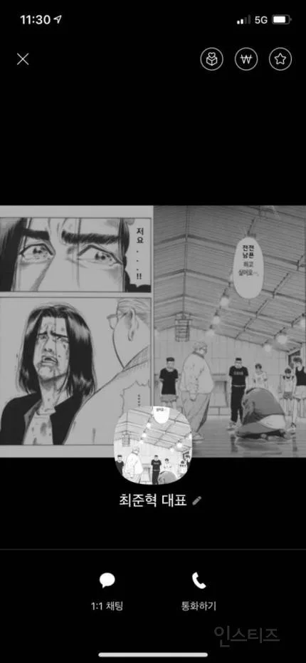 Choi Joon Hyuk decided to change his Kakao Talk profile background photo. The image he posted parodies a famous scene from the manga “Slam Dunk”, with an edited speech balloon reading, “I… want to be Jun Ji Hyun’s husband.”