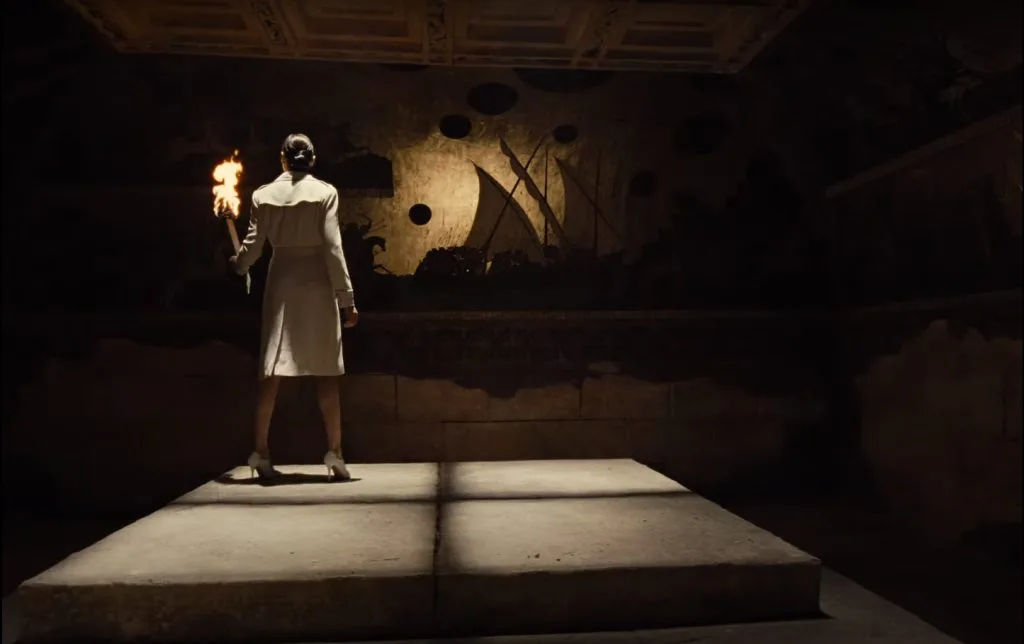 We also get to witness Diana wielding a torch in what seems to be an underground cave. This is the location where she discovers the Darkseid legend that seemingly takes place at the end, after encountering him through a boom tube.