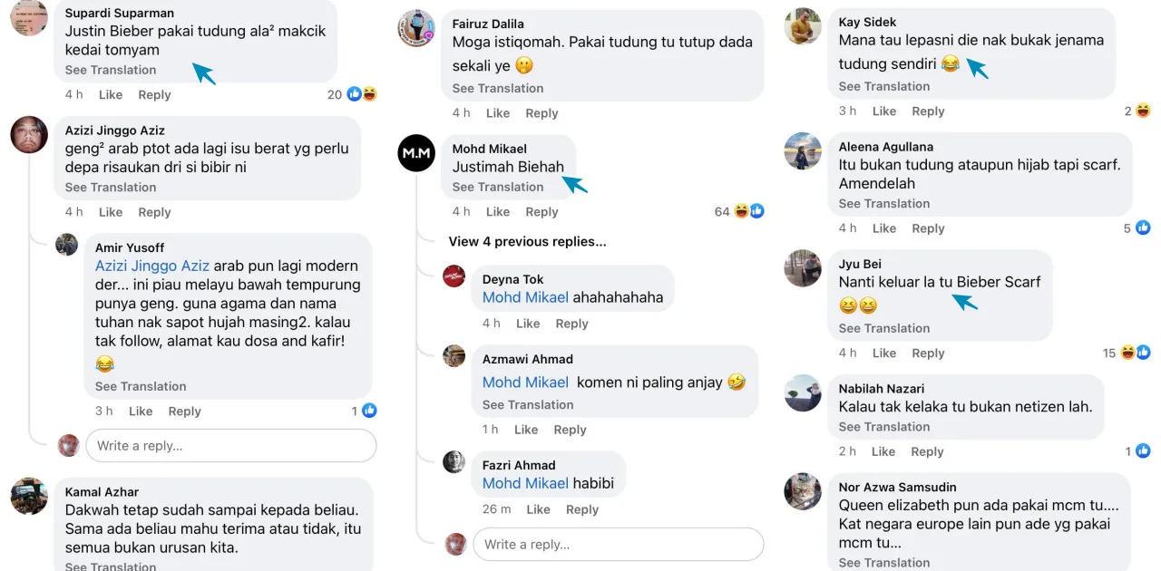 While some Muslims appeared to be offended by Bieber’s clothing, Malaysian netizens, on the other hand, have taken to social media to leave amusing remarks to the viral post featuring the “Stay” hit-maker. One commentator even pointed out on how JB is bringing the “makcik bawang vibes” with the style of tudung he was sporting.