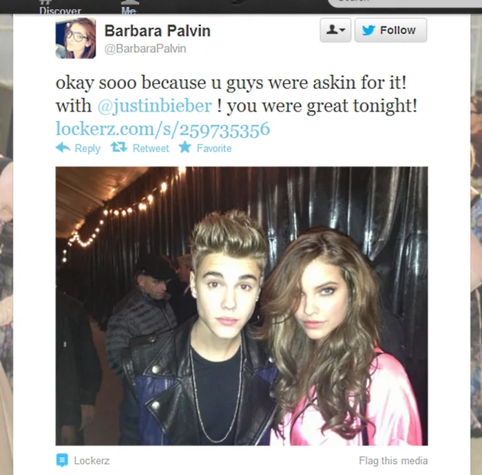 Palvin had a picture taken with Justin while she was in her dressing room and posted it on the internet: