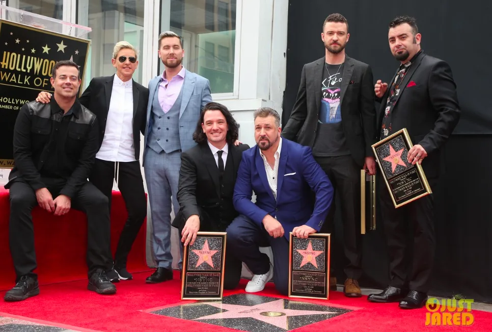 In conjunction with their Hollywood Walk of Fame star, the former boy banders got together for a special surprise on “The Ellen DeGeneres Show”. It was a real treat when Timberlake brought his bandmates – Lance Bass, JC Chasez, Joey Fatone and Chris Kirkpatrick – up on stage.