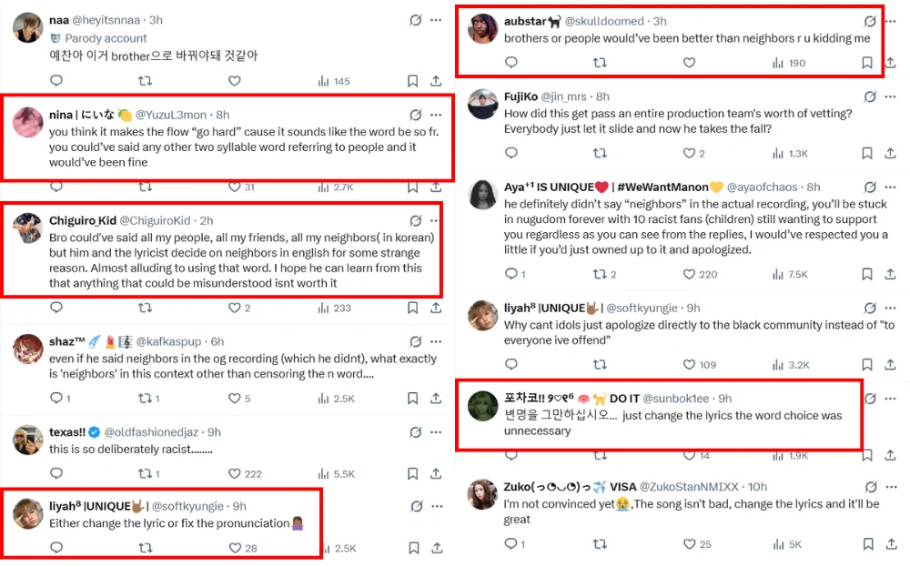 The delivery of lyrics sparked a heated debate on social media. While some defended Yechan and confirmed that the lyric has no racist slur, others claimed that the rapper deliberately pronounced the word to mimic the n-word. Some even questioned the use of the word “neighbours”, arguing that the song could have used other words with a similar meaning.